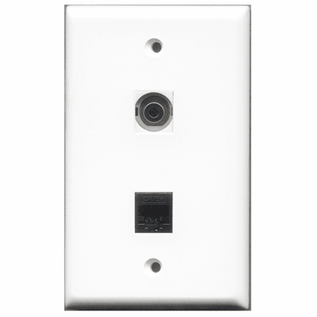 RiteAV - 1 Port 3.5mm - 1 Port Cat5e Ethernet Black Wall Plate White