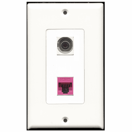 RiteAV - 1 Port 3.5mm - 1 Port Cat5e Ethernet Pink Wall Plate Decora White