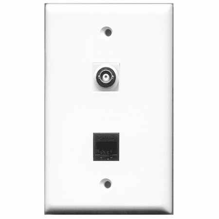 RiteAV - 1 Port BNC - 1 Port Cat5e Ethernet Black Wall Plate White