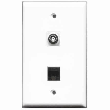 RiteAV - 1 Port BNC 1 Port Cat6 Black Wall Plate White