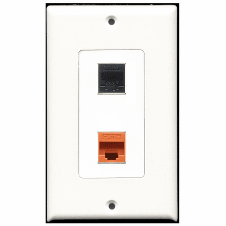 RiteAV - 1 Port Cat5e Ethernet Black - 1 Port Cat5e Ethernet Orange Wall Plate Decora White
