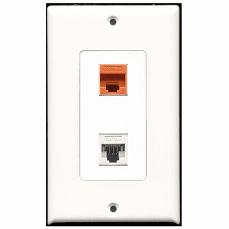 RiteAV - 1 Port Cat5e Ethernet White - 1 Port Cat5e Ethernet Orange Wall Plate Decora White