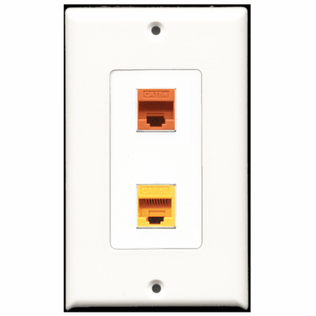 RiteAV - 1 Port Cat5e Ethernet Yellow - 1 Port Cat5e Ethernet Orange Wall Plate Decora White