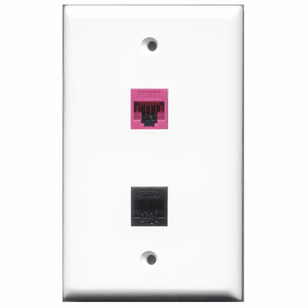 RiteAV - 1 Port Cat5e Ethernet Black - 1 Port Cat5e Ethernet Pink Wall Plate White