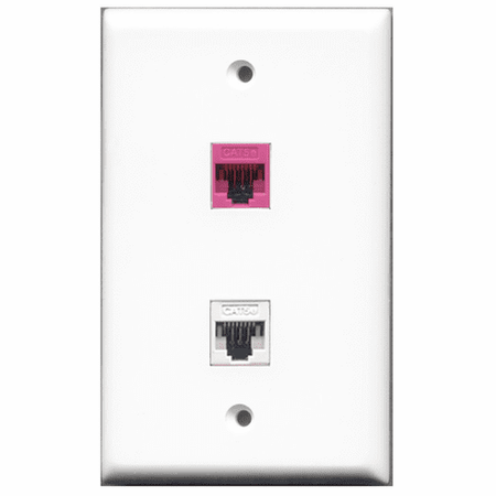 RiteAV - 1 Port Cat5e Ethernet White - 1 Port Cat5e Ethernet Pink Wall Plate White