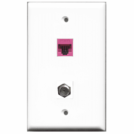 RiteAV - 1 Port Coax 1 Port Cat5e Pink Wall Plate