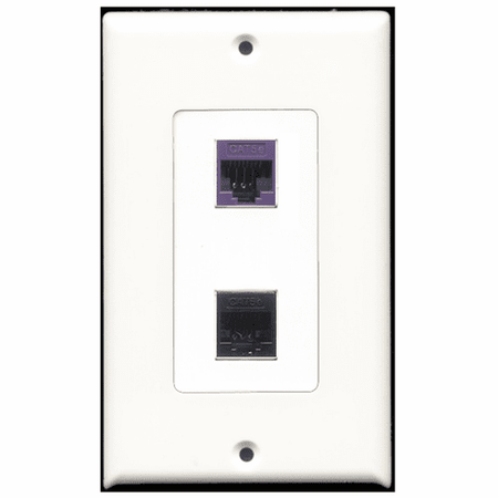 RiteAV - 1 Port Cat5e Ethernet Black - 1 Port Cat5e Ethernet Purple Wall Plate Decora White