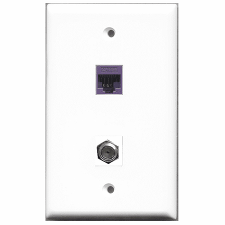 RiteAV - 1 Port Coax 1 Port Cat5e Purple Wall Plate