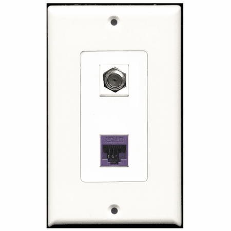 RiteAV - 1 Port Coax Port Cable TV F Type - 1 Port Cat5e Ethernet Purple Wall Plate Decora White