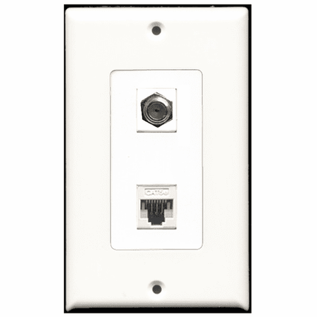 RiteAV - 1 Port Coax Port Cable TV F Type - 1 Port Cat5e Ethernet White Wall Plate Decora White