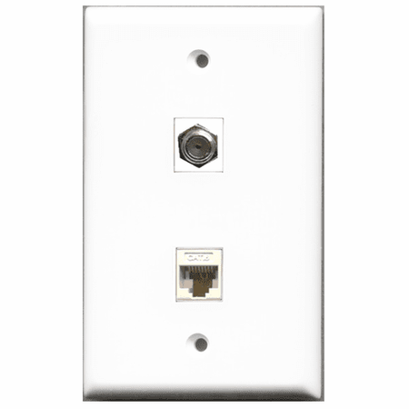 RiteAV - 1 Port Coax 1 Port Cat6 White Wall Plate White