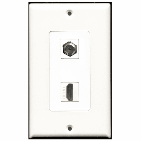 RiteAV - 1 Port HDMI - 1 Port Coax Port Cable TV F Type Wall Plate Decora White