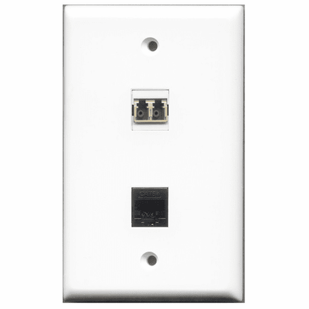 RiteAV - 1 Port Cat5e Ethernet Black - 1 Port LC Fiber Multimode Duplex Port Wall Plate White