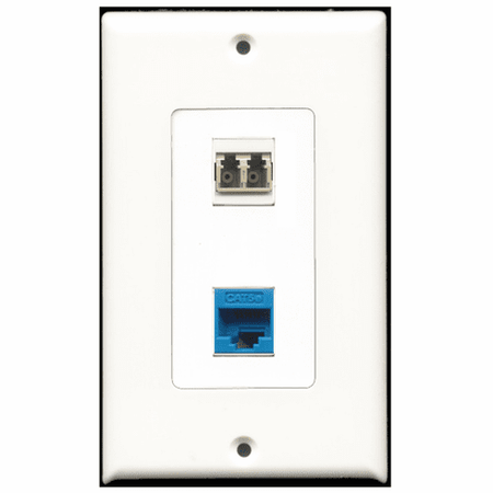 RiteAV - 1 Port Cat5e Ethernet Blue - 1 Port LC Fiber Multimode Duplex Port Wall Plate Decora White
