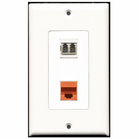 RiteAV - 1 Port Cat5e Ethernet Orange - 1 Port LC Fiber Multimode Duplex Port Wall Plate Decora White