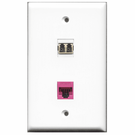 RiteAV - 1 Port Cat5e Ethernet Pink - 1 Port LC Fiber Multimode Duplex Port Wall Plate White