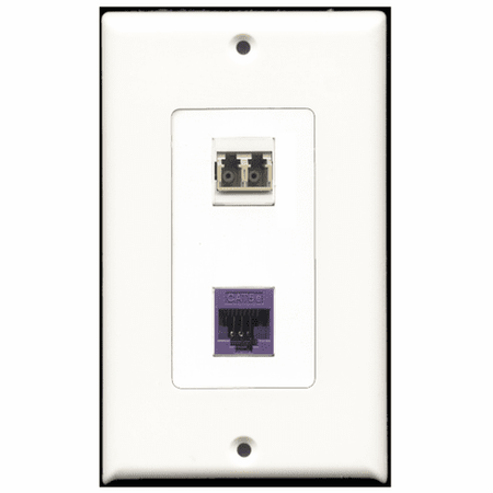 RiteAV - 1 Port Cat5e Ethernet Purple - 1 Port LC Fiber Multimode Duplex Port Wall Plate Decora White