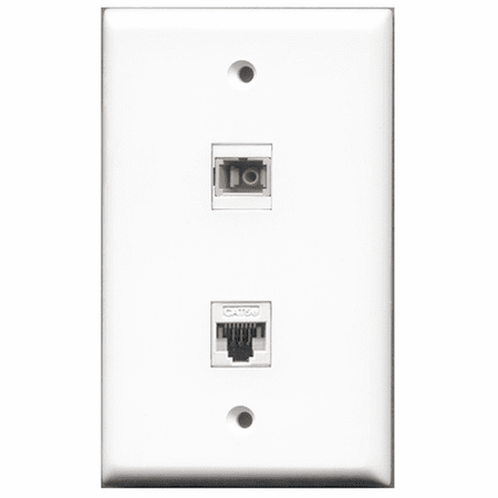 RiteAV - 1 Port Cat5e Ethernet White - 1 Port SC Fiber Multimode Simplex Port Wall Plate White