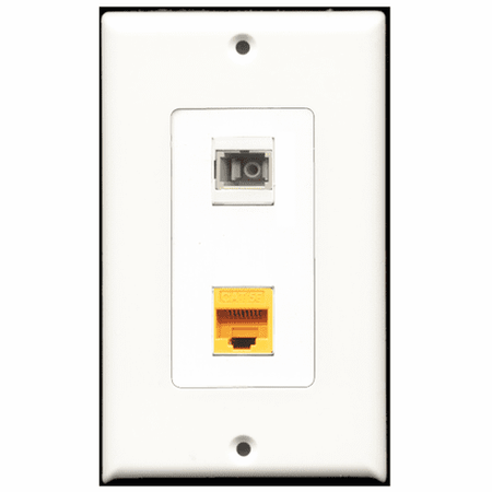 RiteAV - 1 Port Cat5e Ethernet Yellow - 1 Port SC Fiber Multimode Simplex Port Wall Plate Decora White