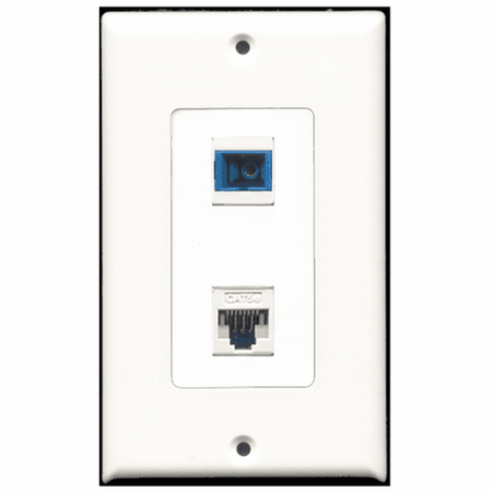 RiteAV - 1 Port Cat5e Ethernet White - 1 Port SC Fiber Singlemode Simplex Port Wall Plate Decora White