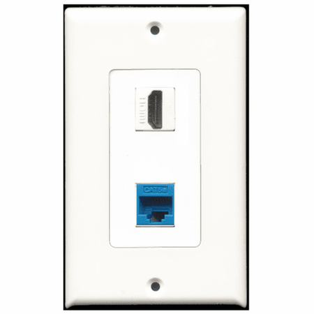RiteAV - 1 Port HDMI - 1 Port Cat5e Ethernet Blue Wall Plate Decora White