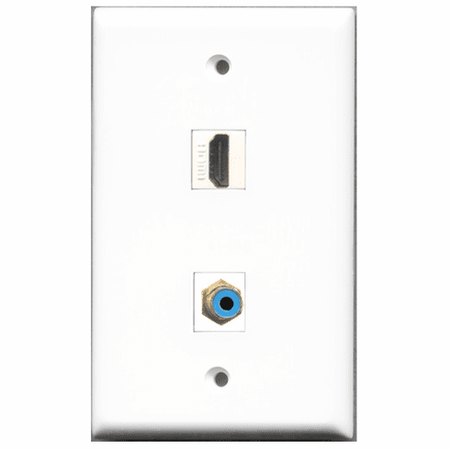 RiteAV - 1 Port HDMI 1 Port RCA Blue Wall Plate White
