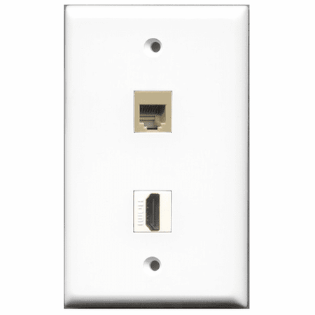 RiteAV - 1 Port HDMI - 1 Port Phone RJ11 RJ12 Beige Wall Plate White