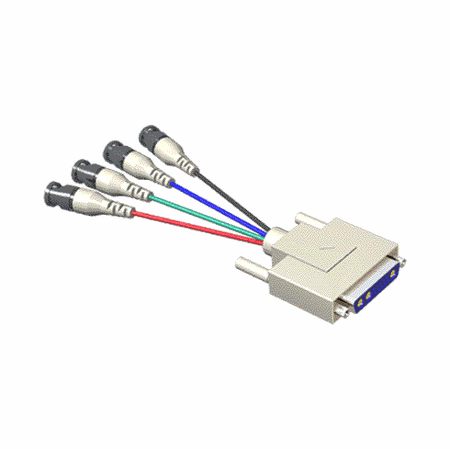 Use to convert a 13W3 Male cable end to 4 male BNC's.