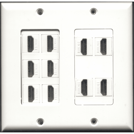 2 GANG - 10 Port HDMI WALL PLATE DECORA INSERT TYPE WHITE (FEMALE COUPLER) WP-0015