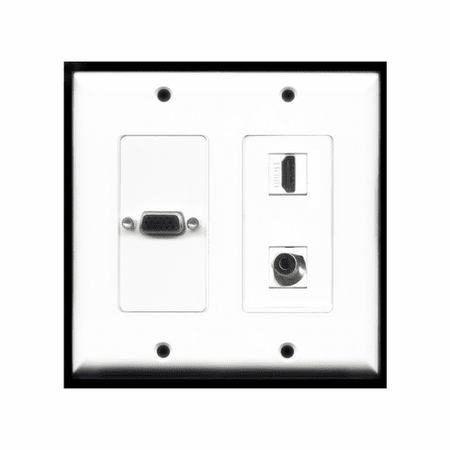 2 GANG - SVGA HDMI 3.5MM HEADPHONE WALL PLATE - WHITE (FEMALE COUPLER TYPE) WP-0001