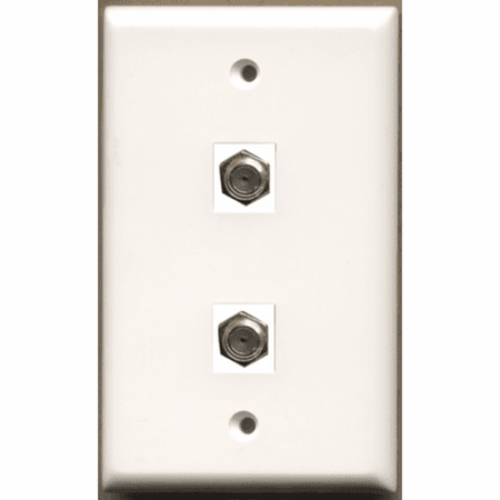 2 Port Coax Cable TV F Type Wall Plate - Flat - White