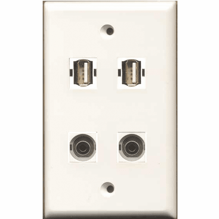 2- USB 2.0 A/A 2- 3.5mm Audio Female Keystone Coupler White Wallplate WP-0022