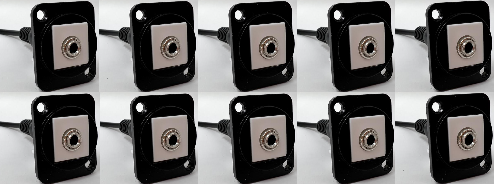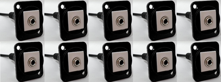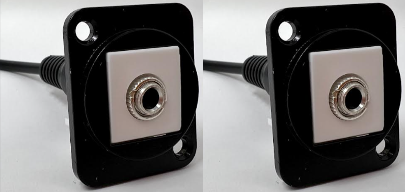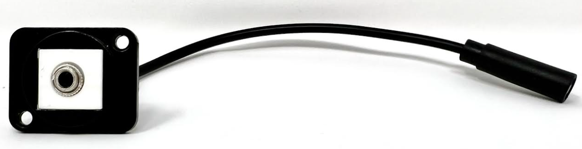 This particular D Series Coupler has a black metal housing (alternate colors are available) and accepts a 3.5mm Cable on the front and back side of the coupler. This model which has a integrated pigtail on the backside to accommodate situations where depth is a concern as since it allows the cable orientation to be manipulated in different directions.