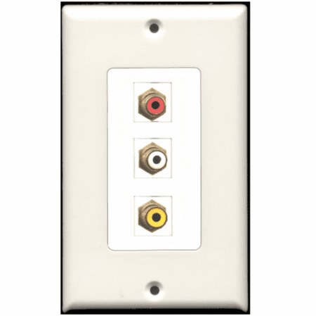 3 port COMPOSITE RCA WALL PLATE - RED WHITE YELLOW (FEMALE SCREW IN COUPLER TYPE) WP-0019-b