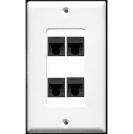 4 Port Cat6 Coupler Wall Plate - Decora White w/Black ports