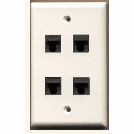 4 Port Cat5e Wall Plate - Flat White w/black ports