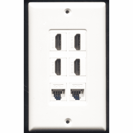 6 Port HDMI/Cat5e Wall Plate - Decora White -4xHDMI and 2xCat5e