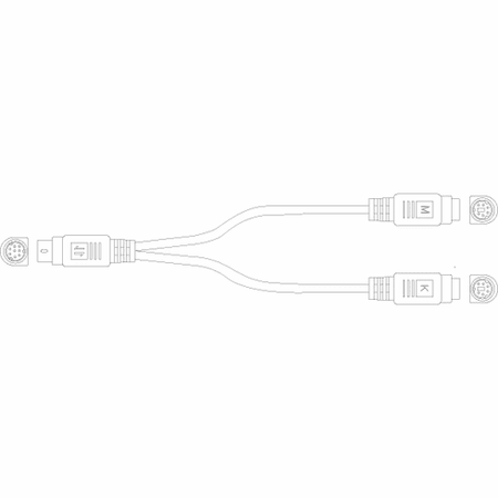 This P/N 8601, 1 Ft long MD8 to PS/2 Adapter Y cable is designed to convert an MD8 female cable end into 2 x MD6 female cable ends. These MUST be used in pairs, one adapter on each end of the MD8 cable. These are not interface/protocol converters. They merely convert connectors. When used on each end of the MD8 cable they change the use from Sun MD8 keyboard and mouse to PS/2 type keyboard and mouse. The MD6 connectors are marked to show which connector is for the keyboard and which is for the mouse. See P/N 8602 for MD8 male cable end conversion. The MD8 cables must connect all 8 wires.