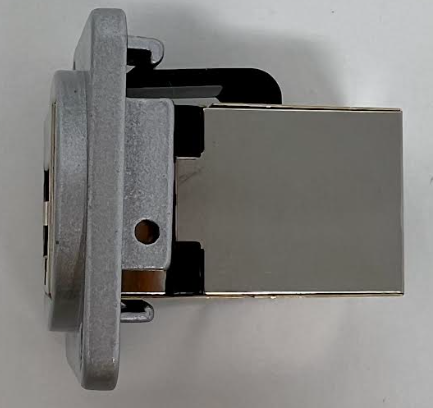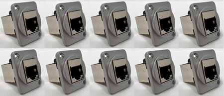 This particular D Series Coupler has a silver metal housing (alternate colors are available) and accepts a Cat6A Terminated Cable on the front and back side of the coupler. The Shielded Housing on the Cat6A Coupler reduces EMI/RFI Interference and the 50 micron gold-plated contacts which ensure clear transmission by eliminating signal loss typically caused by corrosion.