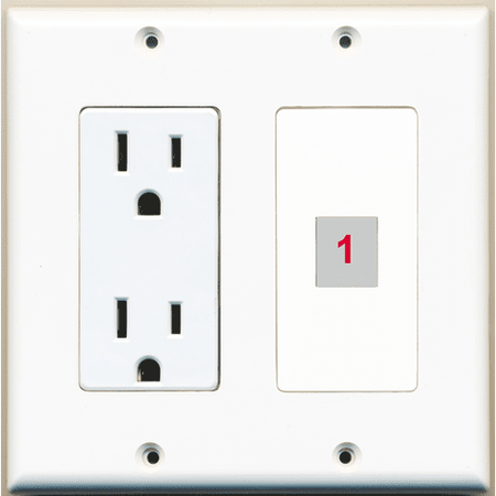Custom 2 Gang Wall Plate with 1 Keystone Port + 1 Power Outlet