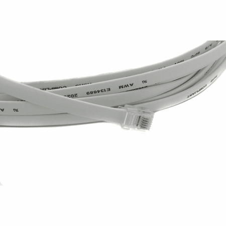 Custom Gray or White Flat RJ12 Phone Line Cord Straight for Data under 7ft 6p6c