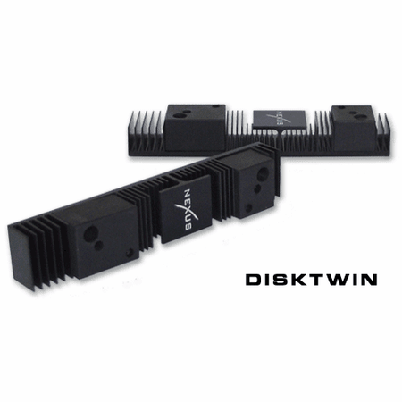 The DiskTwin is made of two pieces of sollid aluminum to augment the cooling capacity of your hard disk, plus each piece is equipped with two high quality solid rubber absorber blocks. Just remove the hard disk from your computer and mount the DiskTwin on both sides of your 3.5" hard disk. Then re-mount the complete unit in a free 5.25" drive bay and your done! No more agony!