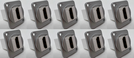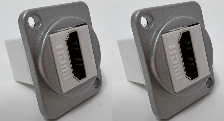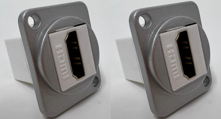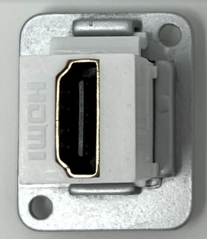 This particular D Series Coupler has a silver metal housing (alternate colors are available) and accepts an HDMI Cable on the front and back side of the coupler. The HDMI 2.0 Coupler supports supports 4K resolution at 60 FPS is backwards compatible to HDMI 1.3a, 1.3b, and 1.4. In addition to this model in which the cable would exit straight out the back of the coupler (180 degrees), we offer other models in which the cable exits up/down out of the back of the plate and also a model which has a integrated pigtail on the backside to accommodate situations where depth is a concern as since it allows the cable orientation to be manipulated rather than requiring 90/180 degree connections.