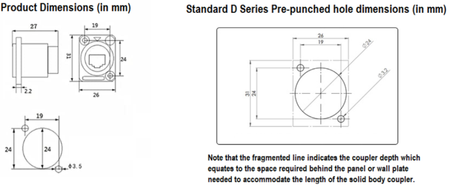 RiteAV’s D Series Chassis Panel Mount Couplers are universally compatible to the pre-punched holes on D Series rack panels and wall plates that can accommodate the D style connector. The countersunk holes on the diagonal corners on the coupler align perfectly to the preconfigured holes on the panels and plates for a seamless fit and simple installation. The feed through design enables pre-terminated cables to plug into both sides of the coupler the same way. No soldering or additional tools are required; just plug and play. The single body robust design provides a long service life for residential, industrial and commercial-grade audio, video and network connections. Bolts and nuts are sold separately and tethered dust caps are also available for purchase.