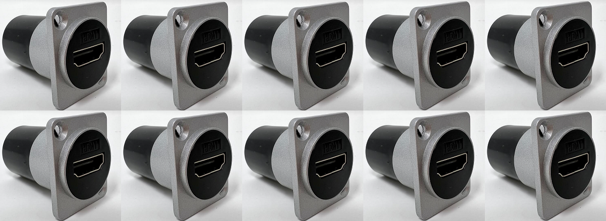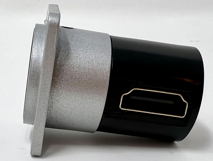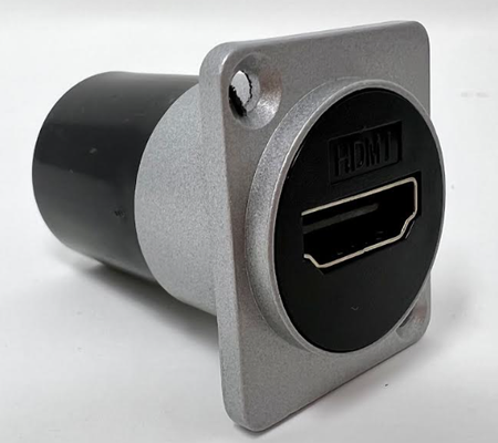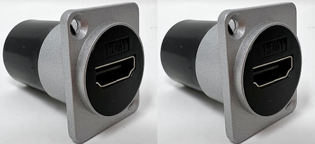 This particular D Series Coupler has a silver metal housing (alternate colors are available) and accepts an HDMI Cable on the front and back side of the coupler. The HDMI 2.0 Coupler supports supports 4K resolution at 60 FPS is backwards compatible to HDMI 1.3a, 1.3b, and 1.4. In addition to this model in which the cable exits up/down out of the backside of the plate, we also offer a model in which the cable would exit straight out the back of the coupler (180 degrees) and a model which has a integrated pigtail on the backside to accommodate situations where depth is a concern as since it allows the cable orientation to be manipulated rather than requiring 90/180 degree connections.