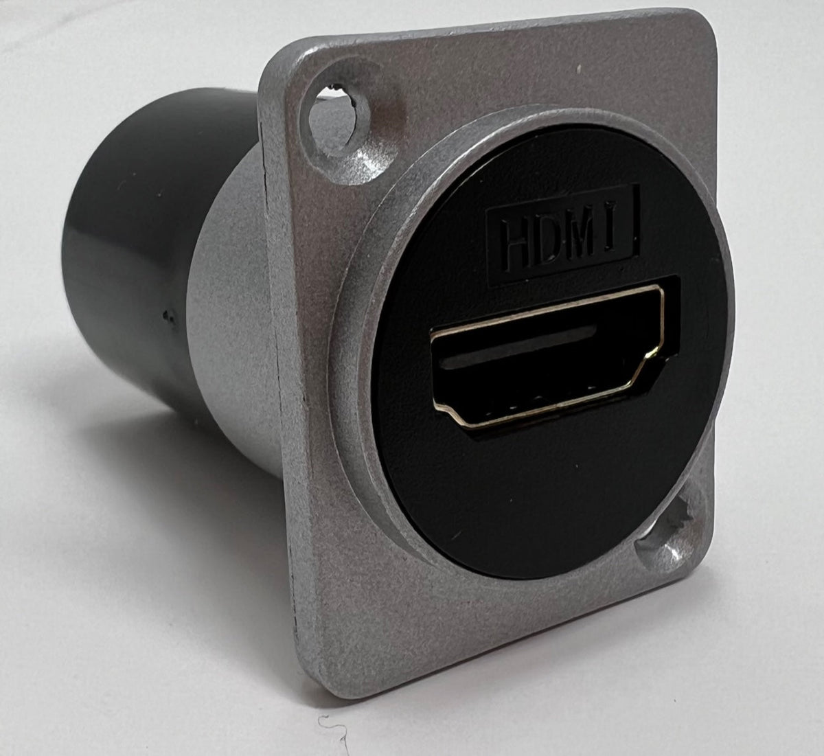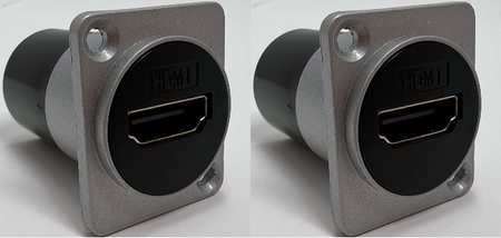 This particular D Series Coupler has a silver metal housing (alternate colors are available) and accepts an HDMI Cable on the front and back side of the coupler. The HDMI 2.0 Coupler supports supports 4K resolution at 60 FPS is backwards compatible to HDMI 1.3a, 1.3b, and 1.4. In addition to this model in which the cable would exit straight out the back of the coupler (180 degrees), we offer other models in which the cable exits up/down off the back of the plate and a model which has a integrated pigtail on the backside to accommodate situations where depth is a concern as since it allows the cable orientation to be manipulated rather than requiring 90/180 degree connections.