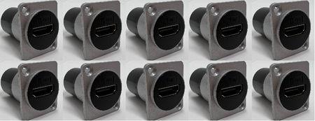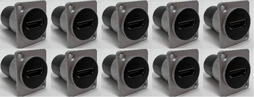 HDMI D Series Heavy Duty Chassis Panel Mount Connector Pass Through Solderless Bulkhead Coupler, Silver Metal Housing - HDMI Straight Exit