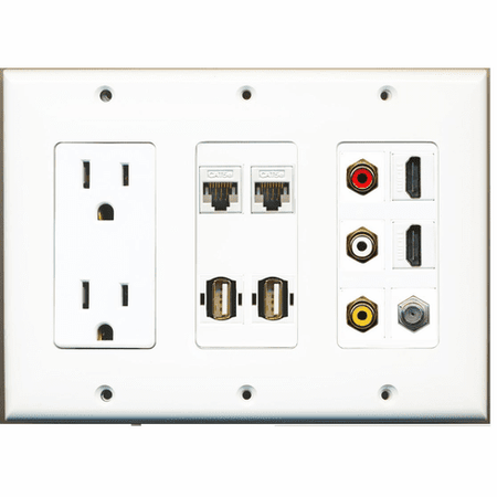 RiteAV 15 Amp Power Outlet 3 RCA Composite 2 HDMI 1 Coax 2 USB Cat5e Wall Plate