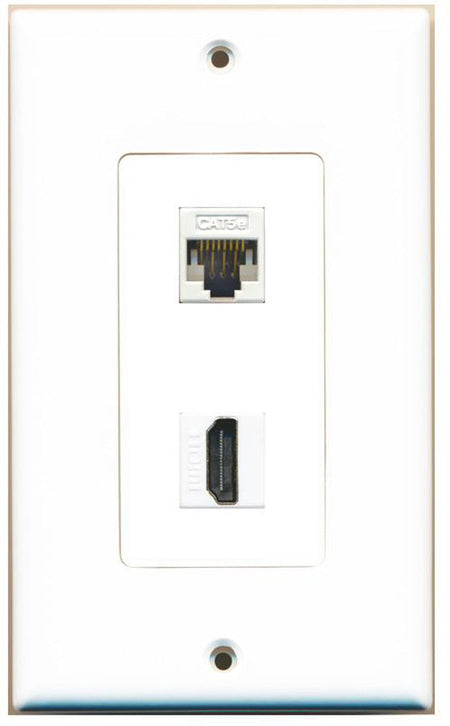 RiteAV - 1 Cat5e Ethernet and 1 HDMI Decorative Wall Plate - White