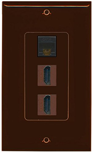 RiteAV - 1 Cat6 Black Ethernet Port and 2 HDMI Female Decorative Wall Plate - Brown